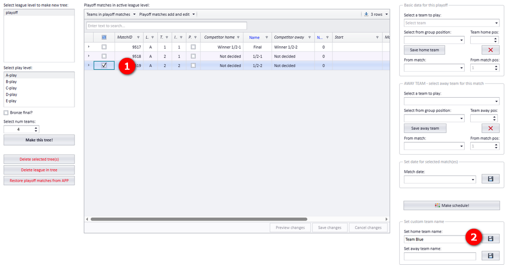 Teams can be edited in several ways. All edit functions are shown in menu "Teams in playoff matches":