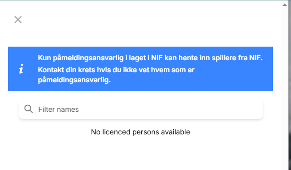 - I serier skal man kun benytte spillere som hentes fra NIF sitt spillerregister