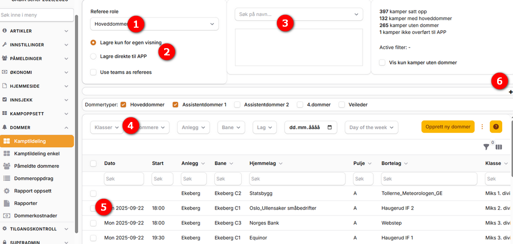 - Tilordne dommer til kamp