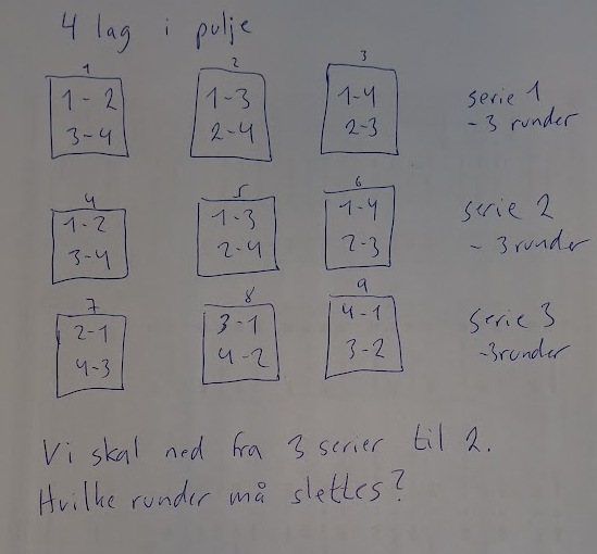 Eksempel med 4 lag i pulje -> Endre fra 3 til 2 serier.
