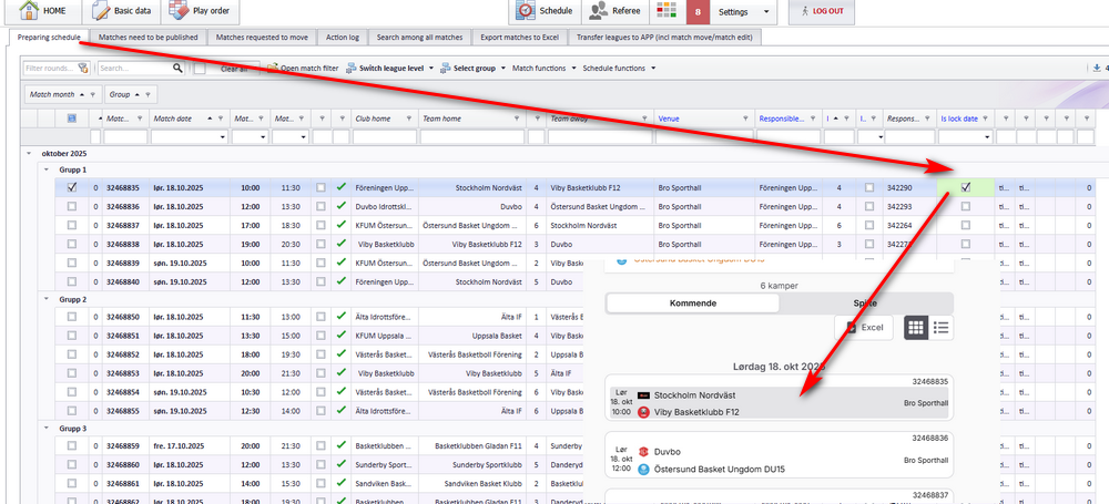 Matches set as "Hidden" will be marked with grey background, and only visible for club amins and those with higher creds.