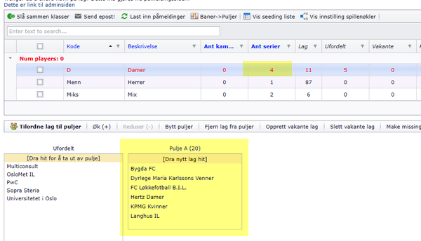 - Hver dag må kunne brukes fortløpende. Selv om et lag har en tidsbegrensning på en av dagene, vil laget få satt opp kamper denne dagen.