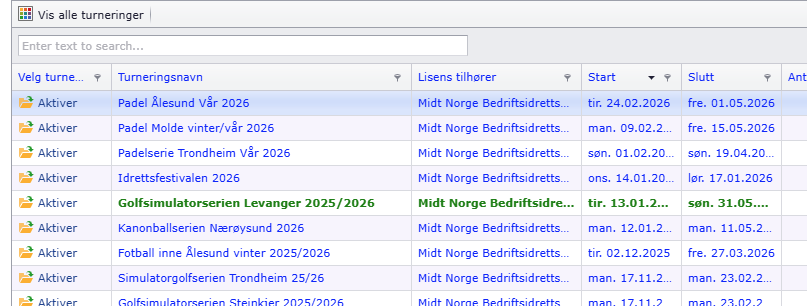 Alle admin-brukere på forbundsnivå vil se samtlige cuper og serier som forbundet eier.